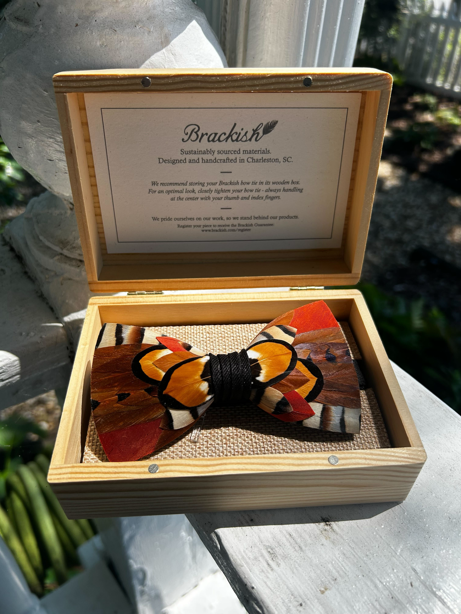 - Each bow tie is hand-crafted in Charleston, South Carolina and takes approximately five hours to make, start to finish.