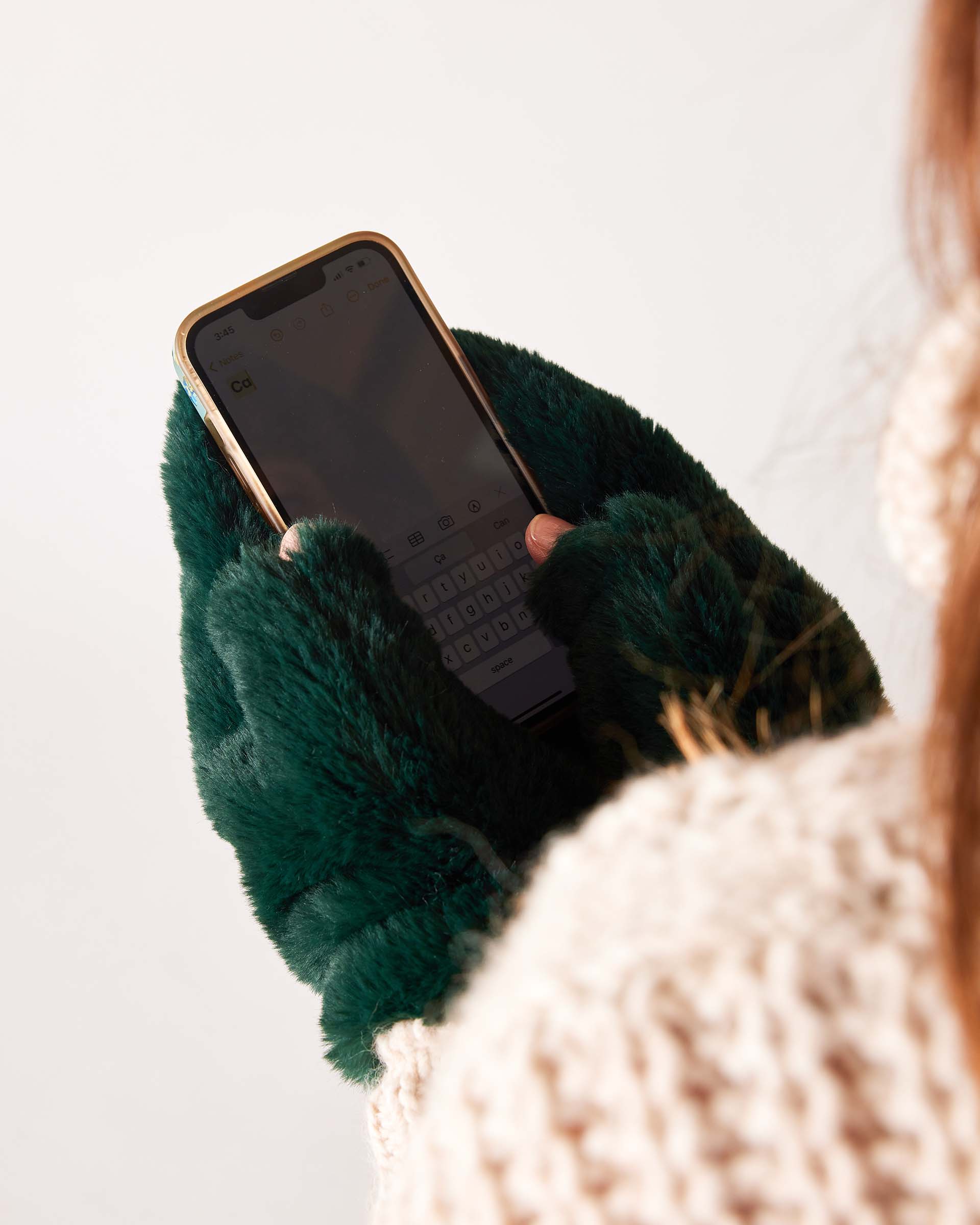 Made for snowy adventures from mountains to cityscapes, our fluffy faux fur mittens are not only stylish, but functional too. They provide extra cozy warmth for your fingers while keeping the thumb exposed for easy touchscreen use. While you’re wearing these adorable furry mittens, text your loved ones that they need a pair! Pair them perfectly with our Cozy Cabin Fur Headband!