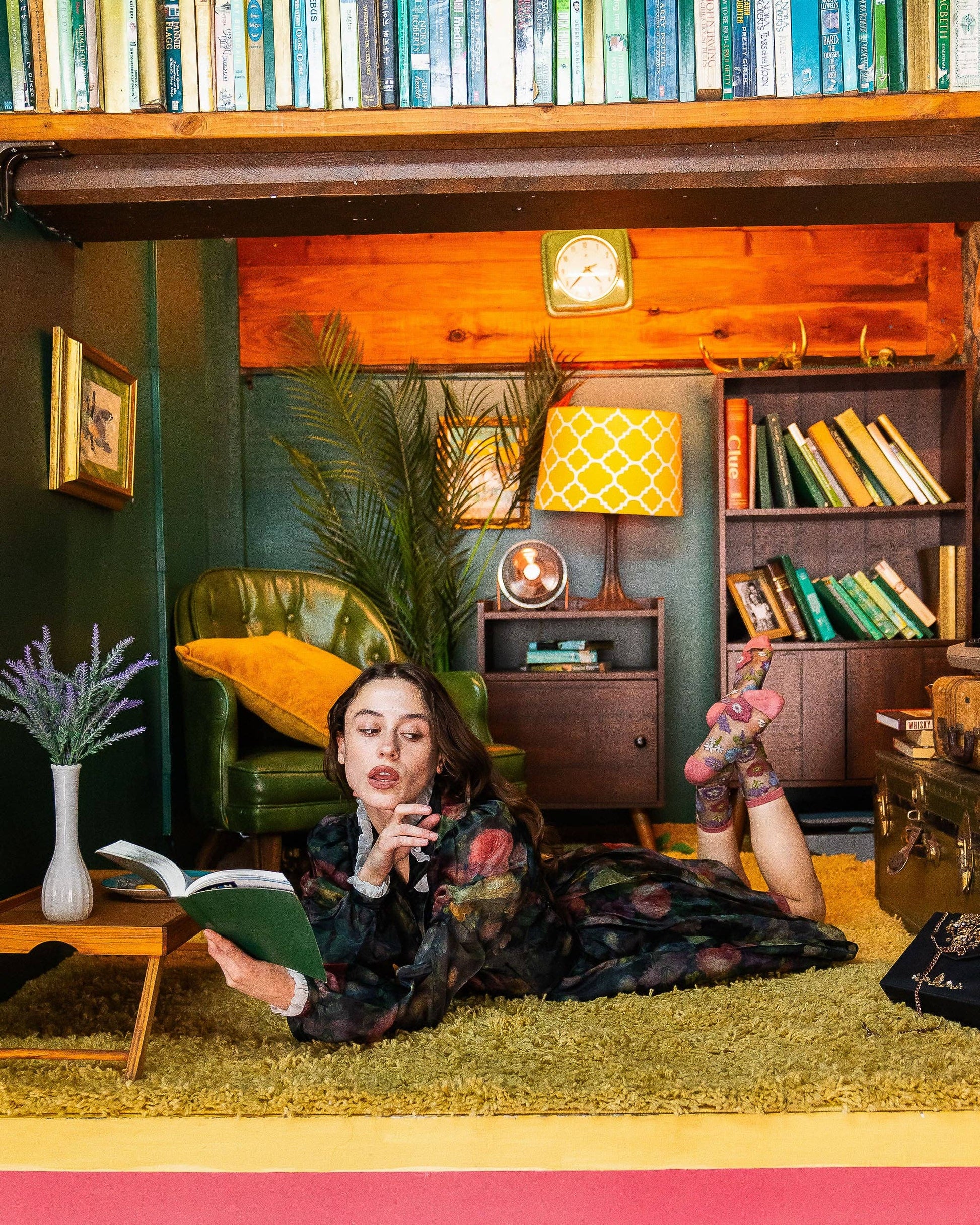 Romantic, vintage-inspired, and enchanting—our Dark Florals Black Sheer Sock is here to bring brooding beauty to your sock drawer. Featuring a cascade of garden blooms set against black sheer fabric in dusky purples, soft blues, sage greens, and ivory. Finished with a dusty rose cuff, heel and toe for an elegant touch.