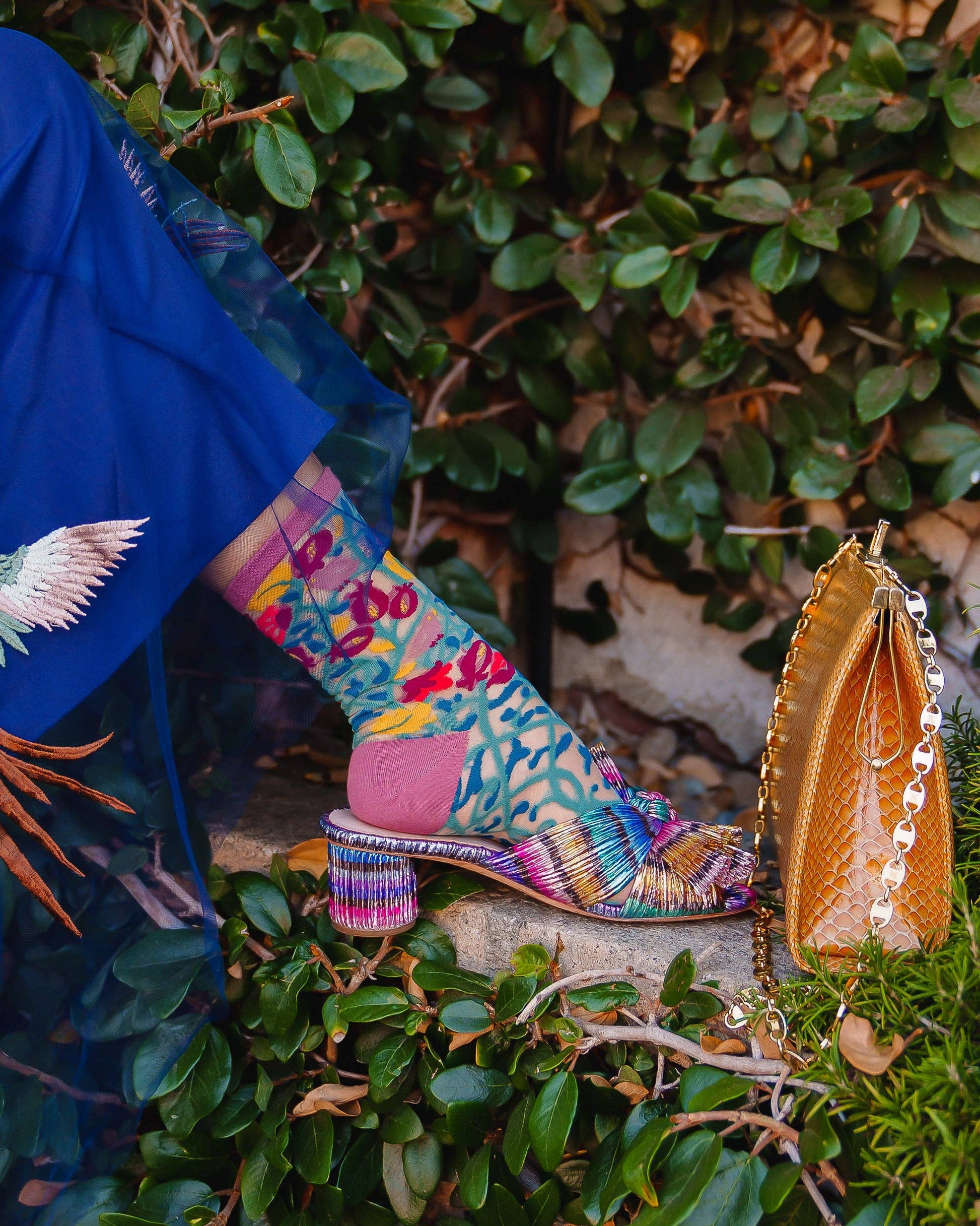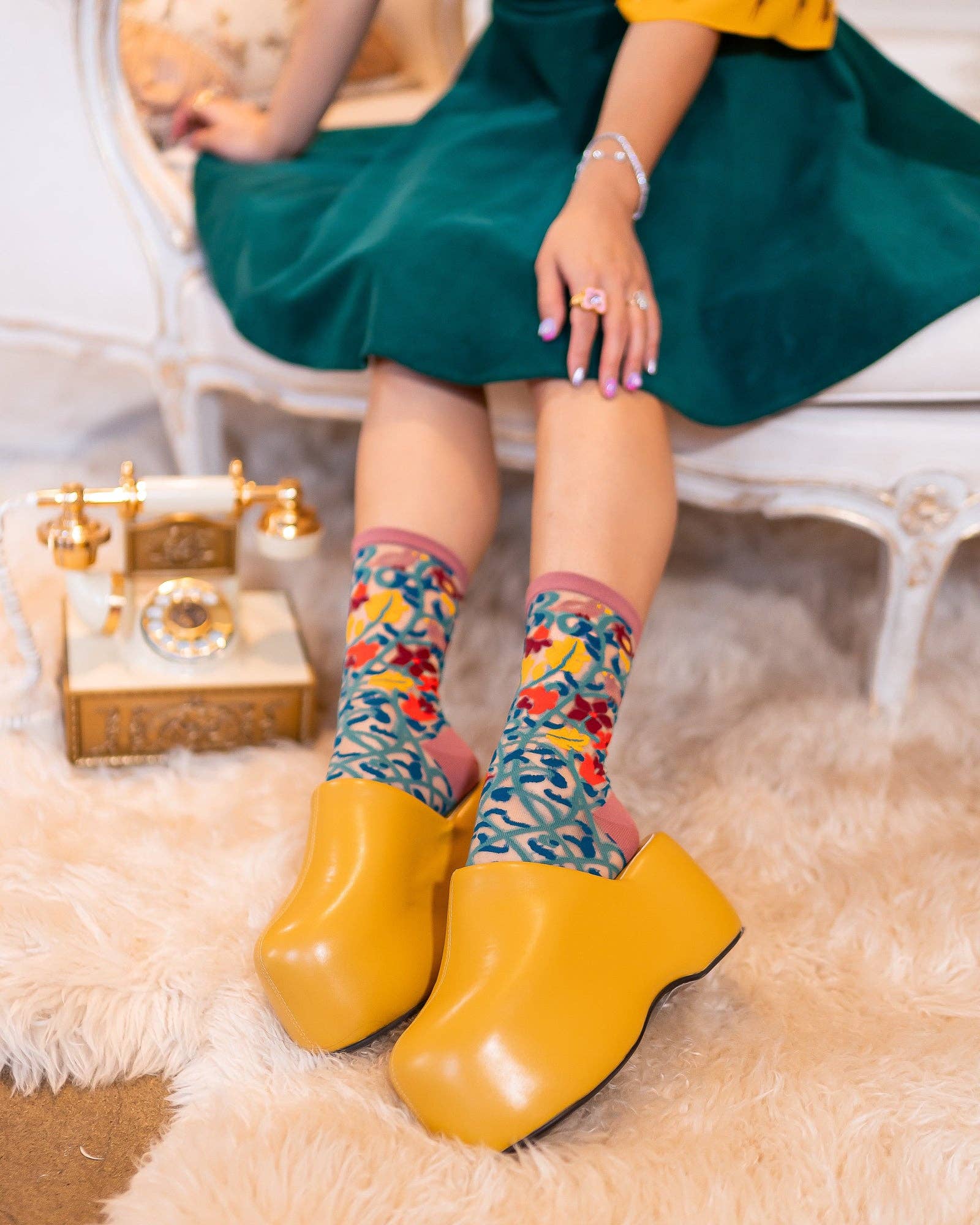 Vintage tapestry vines form into Fall florals, vibrant buds, and whimsical birds on this earthy sheer sock. The duo print design allows you to change up your look and pair with everything from chunky clogs to ankle boots. A bohemian color palette gives this tapestry print sock a free-spirited vibe.